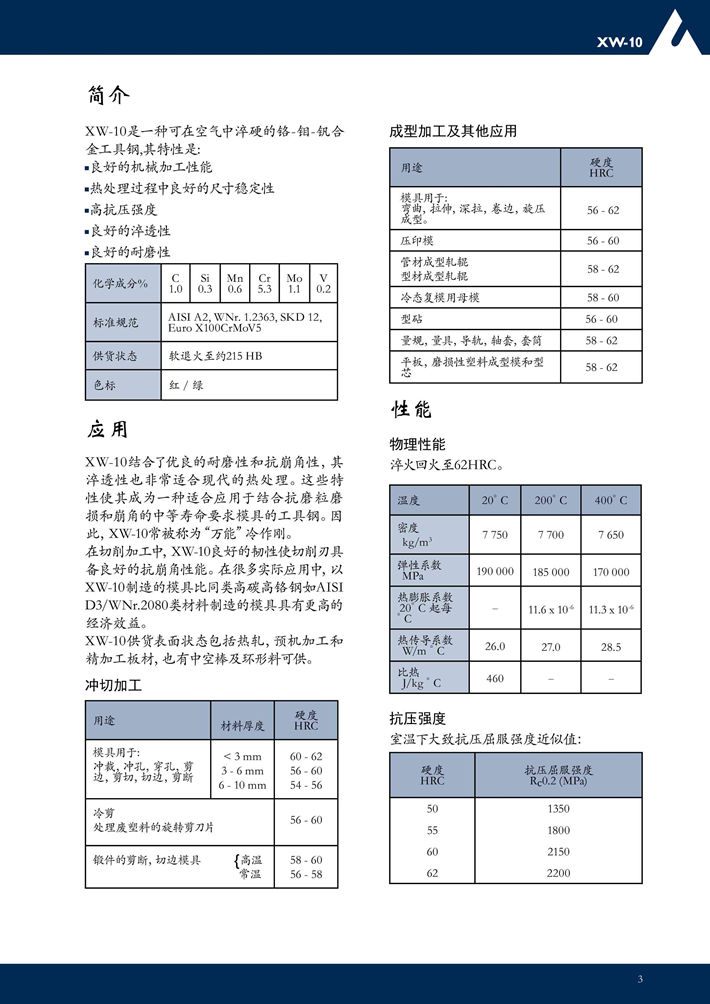瑞典進(jìn)口XW-10冷作模具鋼:優(yōu)良的淬硬性和耐磨性,出色的尺寸穩(wěn)定性。