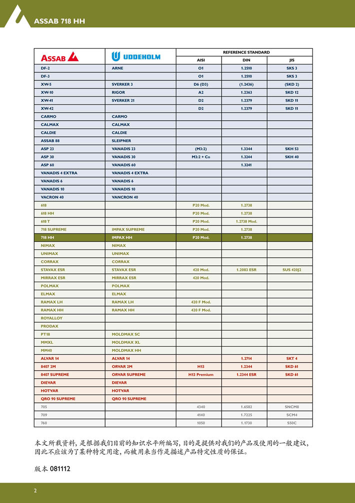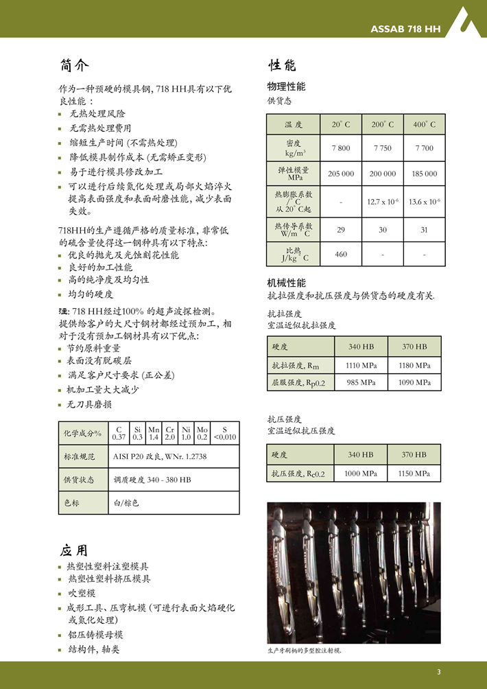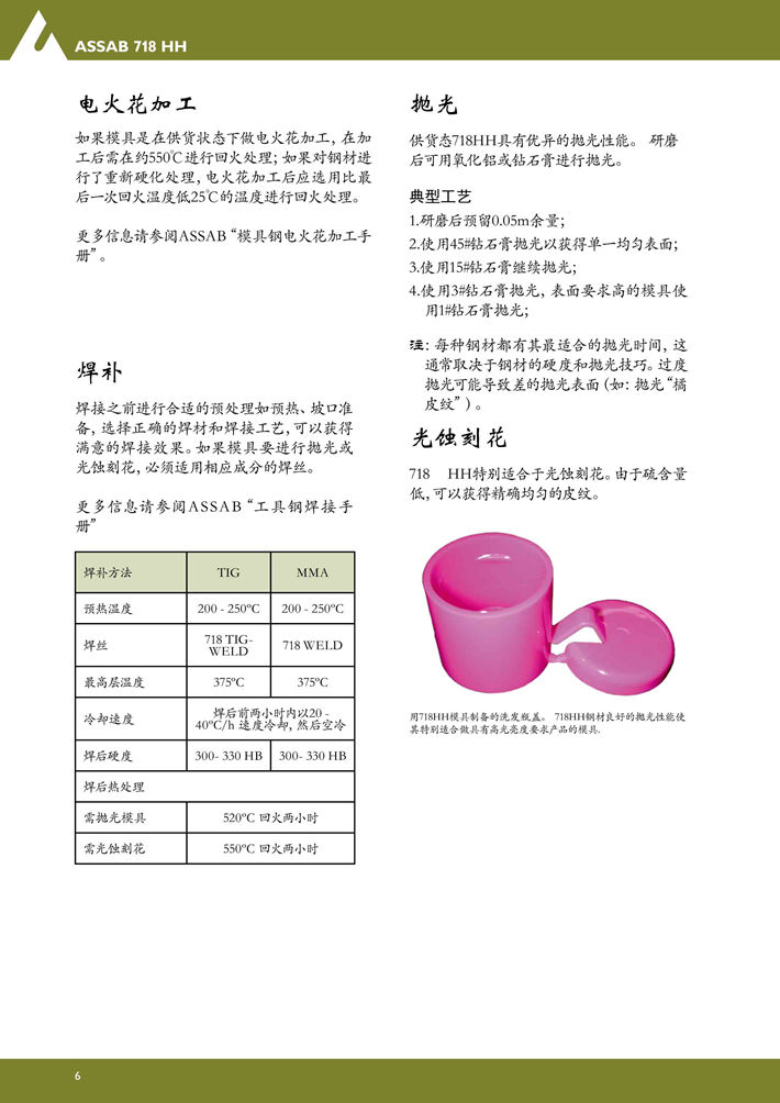瑞典進(jìn)口718HH塑膠模具鋼:改良的預(yù)硬塑膠模具鋼,非常優(yōu)良的拋光性能。